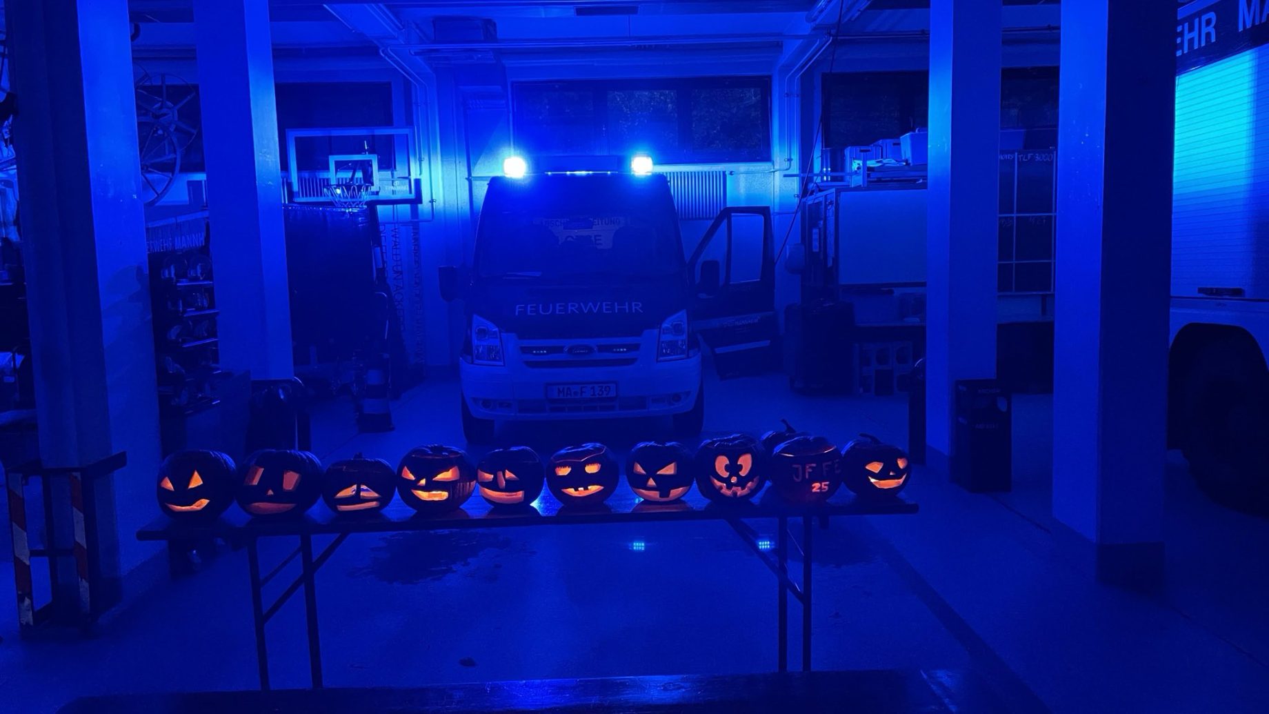 Bei der Jugendgruppe stand Kürbisschnitzen auf dem Programm. Mit viel Eifer machten sich die Jugendlichen in der Fahrzeughalle an die Arbeit, die Kürbisse auszuhöhlen und danach mit Verzierungen bzw. Gesichtern zu versehen. Die Abschlussbilder der schaurigen Gestalten vor dem MZF durften natürlich nicht fehlen.