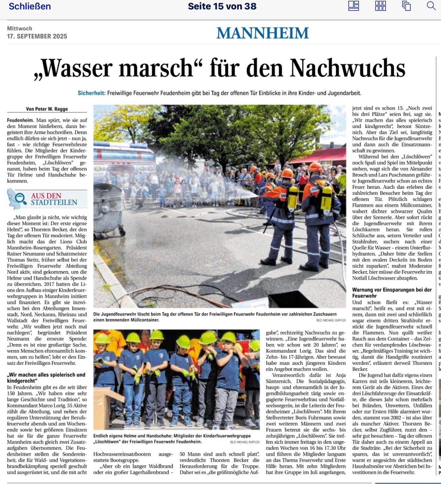 Bei uns ist inzwischen der Alltag wieder eingekehrt, dennoch sind die ersten Planungsgedanken für das kommende Jahr bereits vorhanden – seien Sie also gespannt und kommen Sie 2026 wieder zu Ihrer Feuerwehr Feudenheim!