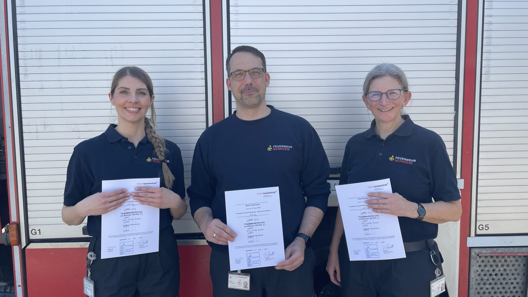 Zum Abschluss dieser weiteren Phase in der ehrenamtlichen Feuerwehrkarriere gehört dann auch die Prüfung, die nun zwei Kameradinnen und ein Kamerad der FF Feudenheim erfolgreich absolvieren konnten (Ja, es heißt auch bei den Kameradinnen „Truppmann“), wozu wir herzlich gratulieren!