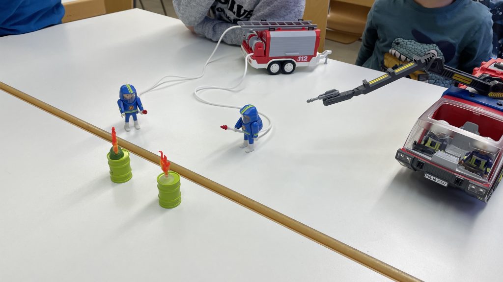 Die ersten Einsätze konnten nun erfolgreich abgearbeitet werden. Für die ganz kleinen war es eher ein Spiel, während die etwas größeren schon fast ein Planspiel draus machten und die Einsatztaktik im Fokus stand.