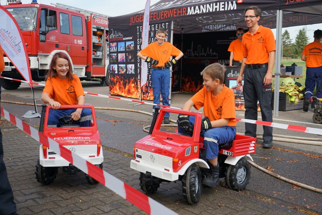 Für die Kids war wie jedes Jahr die Hüpfburg einer der Magnete. Unter der Leitung der Jugendfeuerwehr konnten die Heranwachsenden Gäste ein Feuerwehr-Memory spielen, selbst Feuer löschen, einen Geschicklichkeitsparcours mit Feuerwehrfahrzeugen absolvieren und letztlich noch ein Erinnerungsfoto in Uniform schießen lassen.