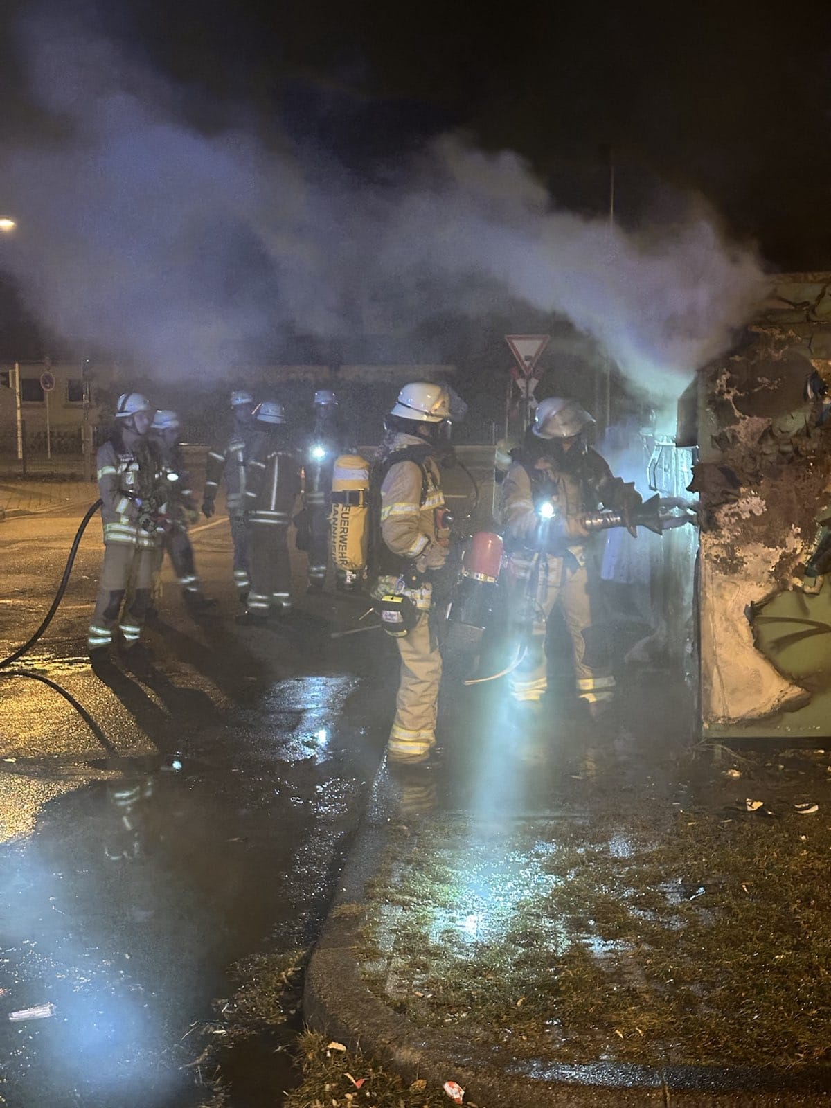 Als weitere Einsatzstelle wurde noch der Vollbrand zweier Container abgearbeitet, hier war eine herausfordernde Öffnung mit hydraulischem Rettungsgerät nötig, um die Glutnester sicher ablöschen zu können.