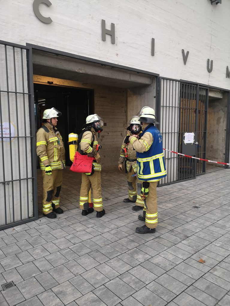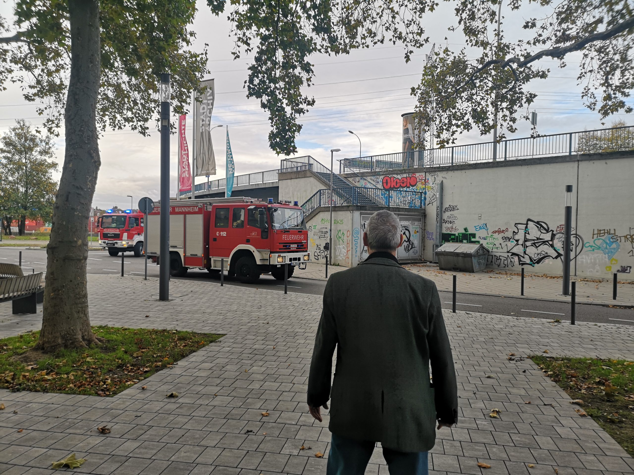 Pünktlich um 9:30 Uhr war alles soweit und die Integrierte Leitstelle Mannheim konnte den teilnehmenden Fahrzeugen die Alarmmeldung auf die Piepser schicken. Kurze Zeit später trafen die Einsatzkräfte mit Blaulicht und Martinshorn am Marchivum ein.