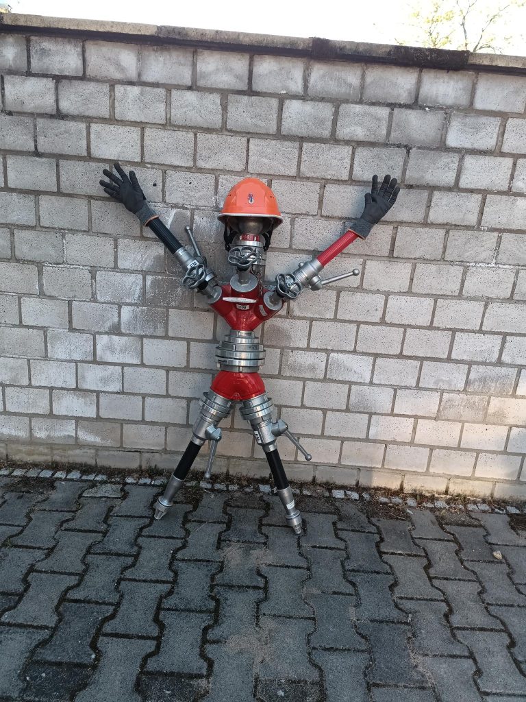 Jedoch wurden auch alle anderen – nicht mit S beginnenden – Ausrüstungsgegenstände zur Wasserförderung besprochen, ausgepackt und ausprobiert. So lag es nahe, dass die Jugendlichen versuchten, mit allen möglichen Armaturen eine Figur zu bauen.